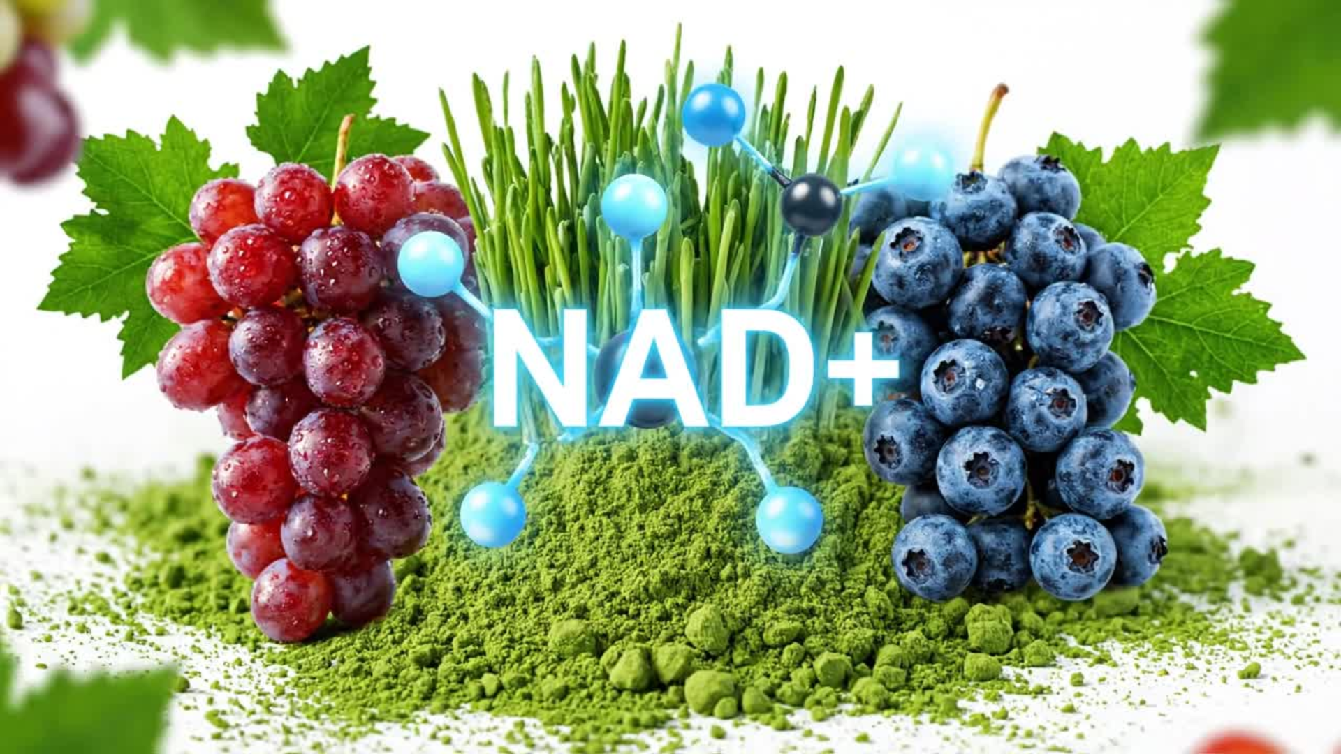 Powered with Barley, NAD+, Resveratrol, Stevia.